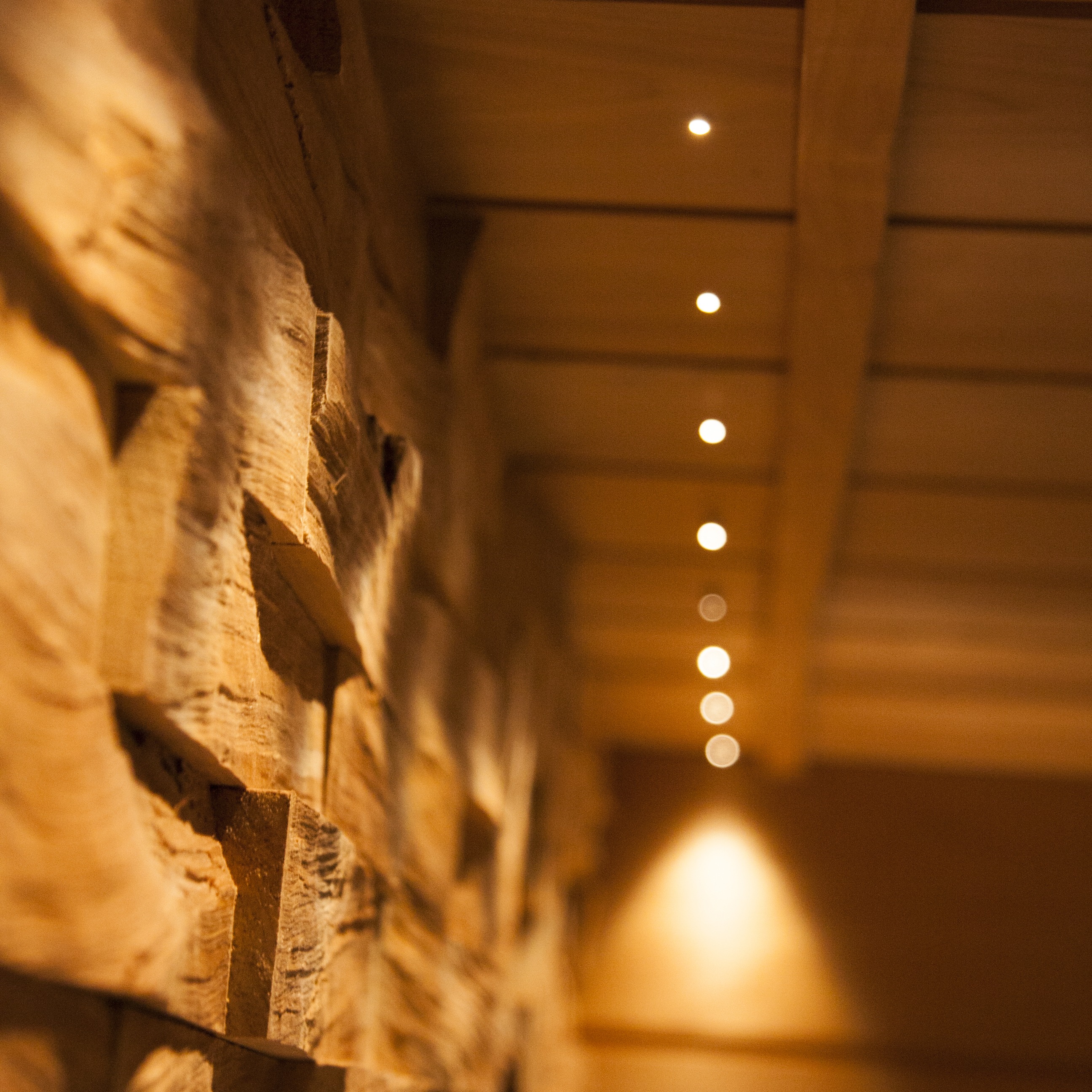 Projektor og driver kan monteres inde i saunaen. Se monteringsvejledning.